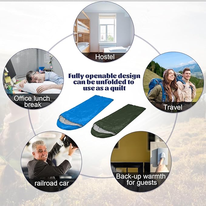 - Weatherproof Protection: These outdoor sleeping bags have a durable polyester surface and are filled with soft hollow cotton for spring, summer, fall and winter; They provide reliable warmth and comfort, and the weatherproof design ensures that you stay warm even in extreme weather conditions and effectively protects against moisture, ensuring a restful night's sleep no matter what the climate