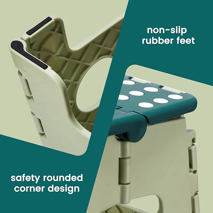 - Safe For Kids and adult : Rubber foot grips, non-slip surface and round edges, support excellent traction for the collapsible folding step stool; ensure your safety by preventing unwanted slips
