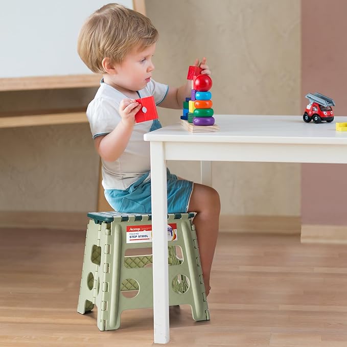 ACSTEP 13 Inch Folding Step Stool,Foldable Step Stools for Kids and Adults 300 LB Capacity, 300 LB Capacit Suitable for Kitchen Fishing,Green