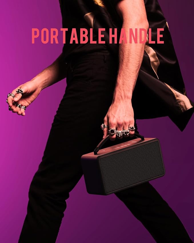DINDIN Portable Bluetooth Speaker: 80W (Peak), 20H Playtime, Loud Wireless Wood Speakers with Bass, AUX and USB Input, Subwoofer, TWS Pairing, Vintage Speaker for Outdoor, Home, Office (Black)