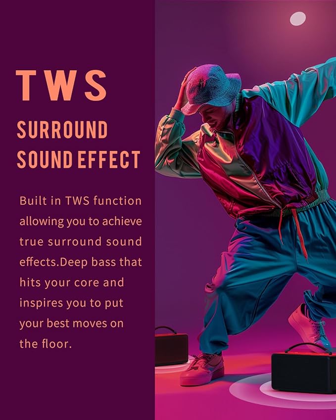 - TWS BLUETOOTH 5.3 SPEAKER: This loud bluetooth speaker is equipped with Bluetooth 5.3, which connects faster. It also has TWS pairing technology, allowing you to enjoy 160W surround sound immediately. Whether it is in the garage, backyard, camping or at work, this speakers bluetooth wireless can meet the various scenarios of using speakers in your daily life.