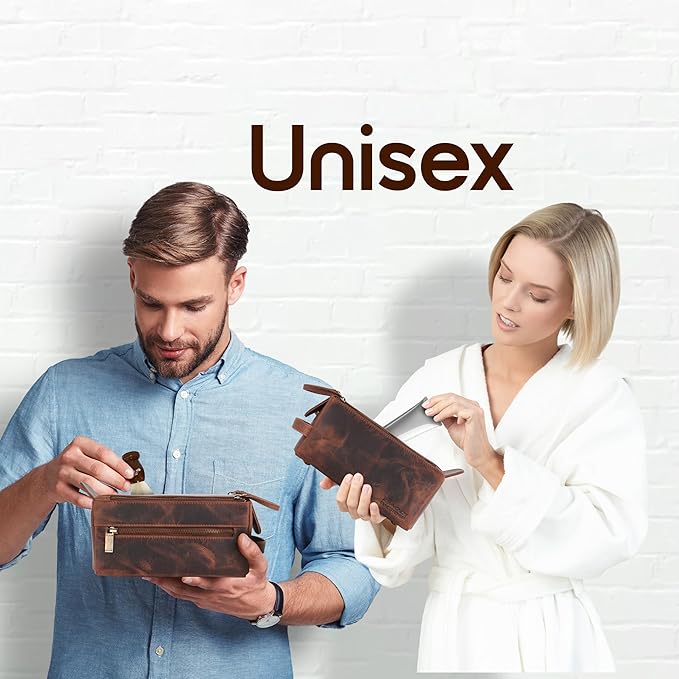 - Genuine Leather Toiletry Bag for Men & Women – Crafted with premium genuine leather, this unisex travel organizer men toiletry travel bag is a durable and stylish solution for storing your toiletries, makeup, and accessories while traveling. Perfect as a travel pouch with zipper, mens toiletry bag, or skin care bag for all your essentials.