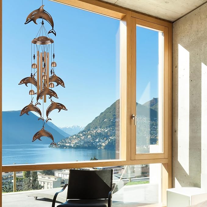 - This dolphins wind catcher can hang beautifully in your garden, home, patio or office, which will produces wonderful nature's crisp sound under the breeze blows. Add a rustic element to any garden with its bronze finish, bold tones and dramatic look. Eye-catching wind Chimes for bars, patios, garden, home, patio, indoor & outdoor decor. It will help you attract wealth and prosperity, success, and all good things.