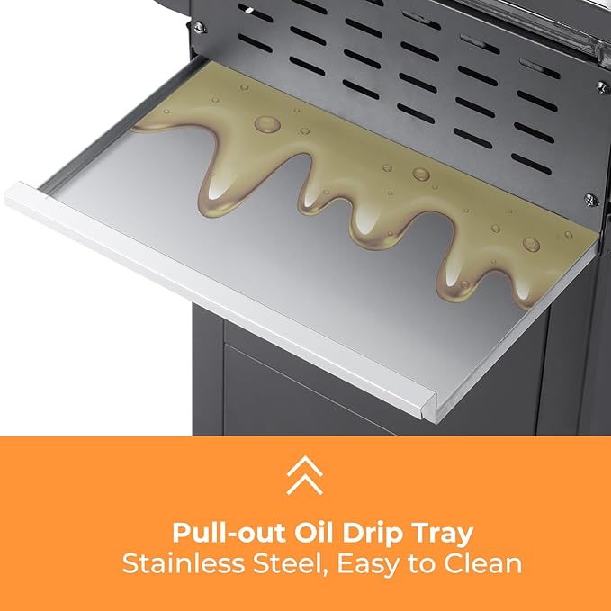 - 【Easy Outdoor Grill】Ignite this propane grill's 2 stainless steel burners, boasting 24,600 BTU/hr. Just push & turn the knob, the grilling begins, the built-in thermometer (100°F-800°F) lets you monitor the cooking temperature, ensuring great results every time