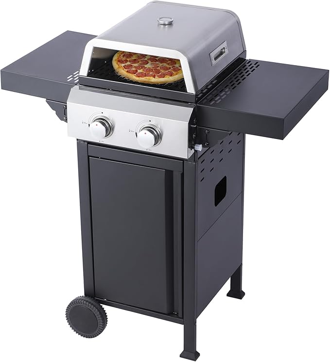 2 Burner Propane Grill with Pizza Box, Durable Lid, Wheels, Foldable Side Tables, Stainless Steel Burner, 24,600 BTU Gas Grill for Patio, Garden Barbecues