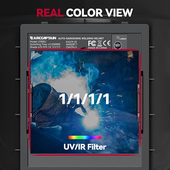 - LONGER SERVICE LIFE - The welding mask is equipped with two solar panels on the front and two CR2450 lithium batteries on the back, providing a working time of up to several years, with enhanced durability.