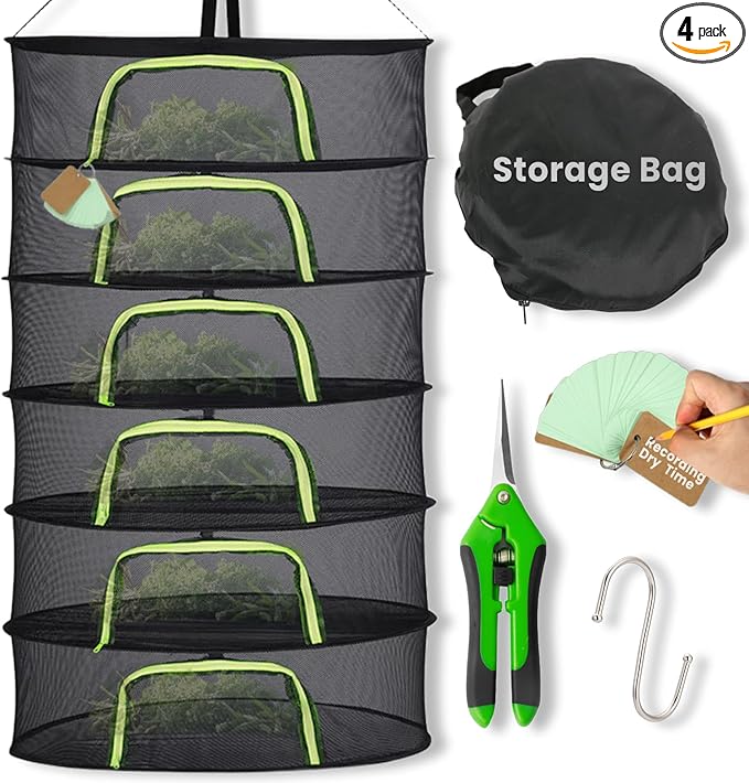 6 Layer 24" Herb Drying Rack Hanging with Garden Pruning Shears, Large Zipper, Hook & Notepad, Foldable Drying Rack for Herbs, Spices & Seasonings, Hanging Herb Dryer Indoor & Outdoor
