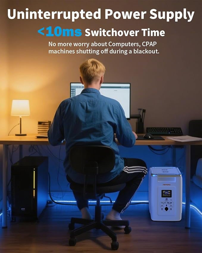 - [Uninterruptible Power Supply] Equipped with 10ms ultra-fast switchover, it safeguards your devices against power outage – ensuring seamless operation for computers, medical equipment, and aquariums during blackouts.