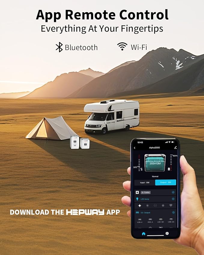 - [App Remote Control] Control everything via the Cozylife app (Wi-Fi/Bluetooth). Monitor & customize your Alpha 2000/X: set charge priority, recharge speed, standby modes (auto-off/timed/fridge), screen timeout, and button sounds. Full remote access at your fingertips