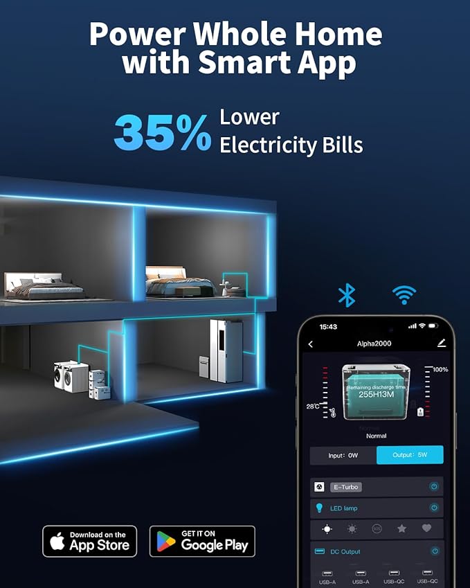 - 1 to 16 units Expansion: With a massive 2048Wh capacity, the HEPWAY Alpha 2000 supports up to 15 add-on battery packs at a time, expanding from 2.016kWh to a mighty 32kWh, ensuring 6-20 days of home backup power.