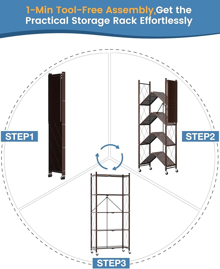 - [1-Min Tool-Free Assembly] No bolts, no tools, no frustration! Unfolds from 3.9-inch flat pack to 70.7" shelving in 60 seconds - 10x faster than traditional shelves. Perfect for last-minute garage cleanups, holiday guest prep, or emergency storm supplies organization.