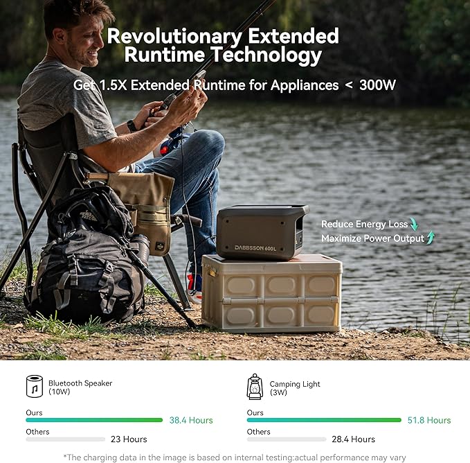- 【Revolutionary Extended Runtime Tech – 1.5X More Runtime】 Powered by advanced semi-solid LiFePO4 cells and AI-driven BMS, the 600L power station offers 1.5X extended runtime for appliances under 300W. Experience reduced energy loss, higher efficiency, and stable output for longer-lasting performance.It delivers over 4000 charging cycles and 10+ years of reliable use. Advanced thermal management and 56+ safety protections guarantee superior durability and safety for outdoor and indoor power.