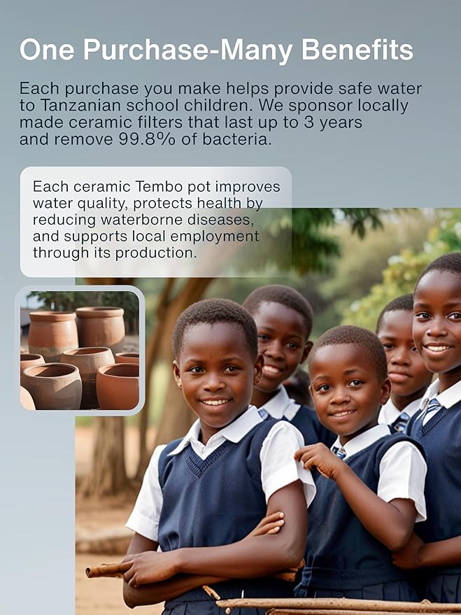 - Product Benefits : Removes bacteria, heavy metals, and other impurities while retaining necessary minerals. Easy to use with gravity-fed design and large capacity. Includes accessories and has a long lifespan and warranty. Removes bacteria, heavy metals, and other impurities while retaining necessary minerals. Easy to use with gravity-fed design and large capacity. Includes accessorie… See more
