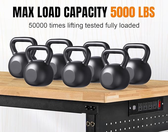 - ETL-CERTIFIED POWER OUTLET: The workbench comes with an ETL-certified power outlet with switch, 4 AC outlets, 2 USB ports, and a 9.8-inch cord to safely power tools and charge equipment at the same time. You save money by not having to purchase additional outlets.