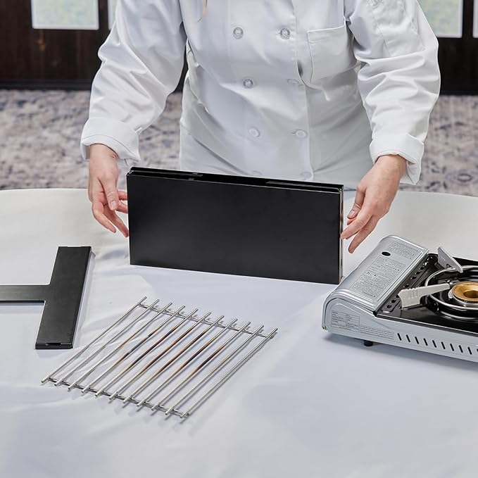 - DURABLE & EASY-TO-CLEAN BLACK STEEL STOVE COVER, BUILT FOR LONG-LASTING PERFORMANCE – Made from rugged premium black steel, the Chef Master Butane Stove Cover is built to endure regular use in both indoor and outdoor cooking environments. Designed for durability and ease of maintenance, it wipes clean effortlessly and is dishwasher-safe for added convenience. Whether you're camping, tailgating, or using it at home, this robust cover protects your Chef Master butane stove while ensuring a stable, secure cooking surface for every meal.