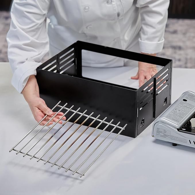 - DURABLE, COLLAPSIBLE, & PORTABLE BUTANE STOVE COVER FOR OUTDOOR COOKING – Crafted from high-quality black steel, the Chef Master Butane Stove Cover delivers rugged durability while staying lightweight and easy to carry. Its foldable, compact design allows for effortless storage and transport, making it ideal for camping trips, tailgating events, emergency cooking, and outdoor kitchens. Built to work seamlessly with butane stoves powered by Chef Master fuel, this multi-functional cover also acts as a wind guard.