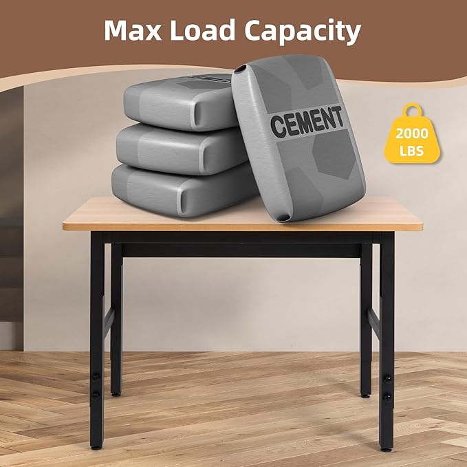 48" Adjustable Workbench, Work Table for Garage, 2000 LBS Capacity Hardwood Work Bench, Heavy Duty Table for Workshop, Office, Garage, Home