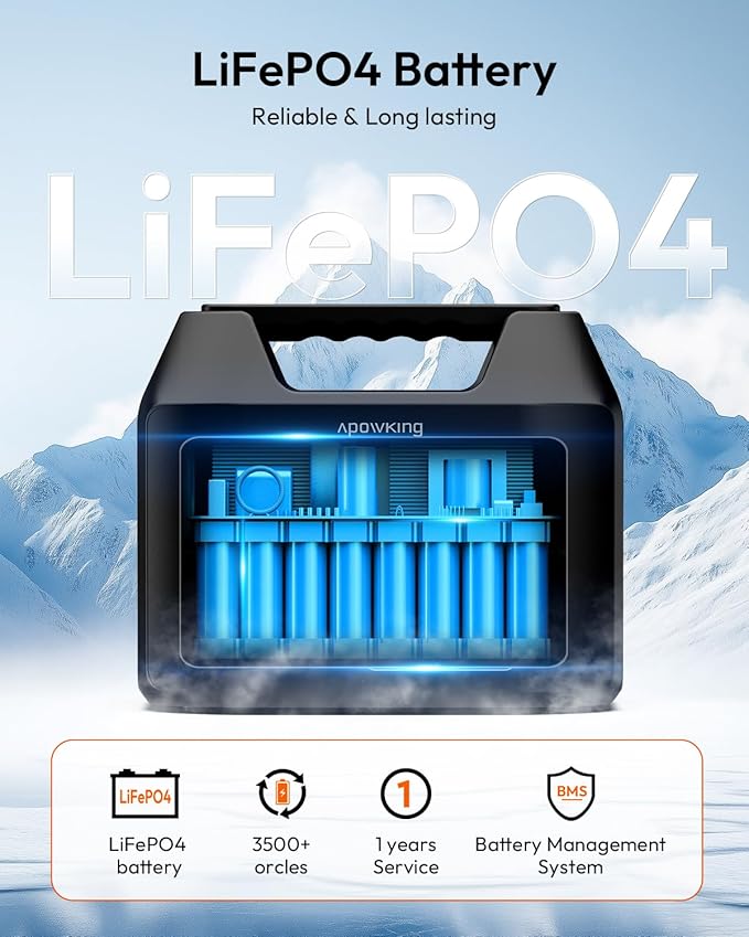 - SECURED POWER STATION BANK: Our power station bank for camping boasts an advanced BMS that guarantees voltage control, optimal temperature regulation, and top-tier safety features. Silent cooling vents maintain a secure operating temperature, while built-in protections against short-circuits and overpower scenarios, offering unparalleled peace of mind. Also, the Pure Sine Wave AC inverter can better protect your sensitive devices, preserving battery life and ensuring user/device safety.