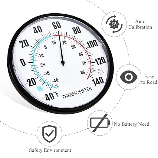 - No Batteries Required: The outdoor wall thermometer has a built-in high-sensitivity special copper plate movement. It does not require wiring or batteries. It can automatically calibrate and sense accurate readings in real-time