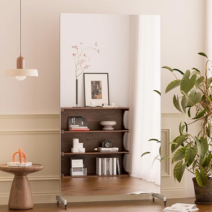 - 【Extra Large Mirror】This huge unbreakable standing mirror, can easily check your outfits, and the giant mirror can hang as a wall mirror or stand as floor & full length mirrors, body mirrors for bedroom, or gym mirrors.