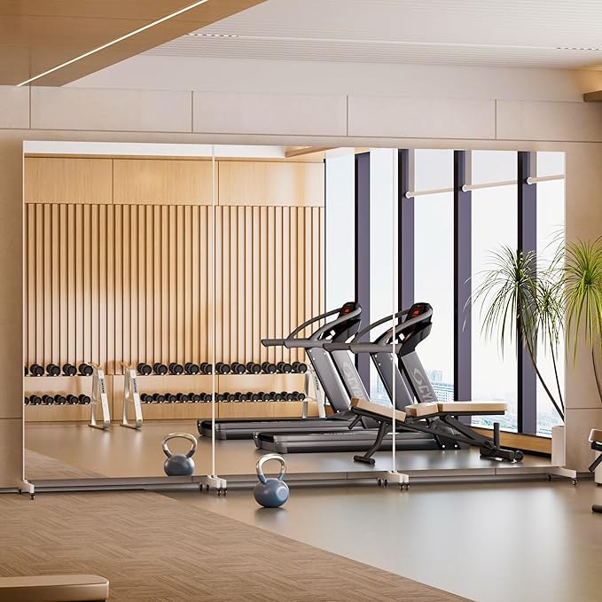 brisafe Home Gym Mirror 360° Swivel on Wheels, 75" X 43" Extra Large Nano Film Super Lightweight Unbreakable Full Length Mirror for Yoga Room, Dance Studio( White)
