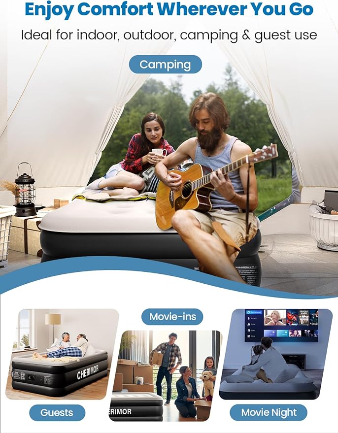 - 48-Hour Leak Test After Inflation: this blow up mattress goes through a 48-hour leak test before leaving the factory to ensure leak-proof quality and long-lasting durability. This inflatable mattress is made with high-density puncture-resistant PVC and reinforced seams. It’s durable enough for frequent use and multiple settings. Includes industrial-grade patch kit – repair a puncture faster than ordering pizza