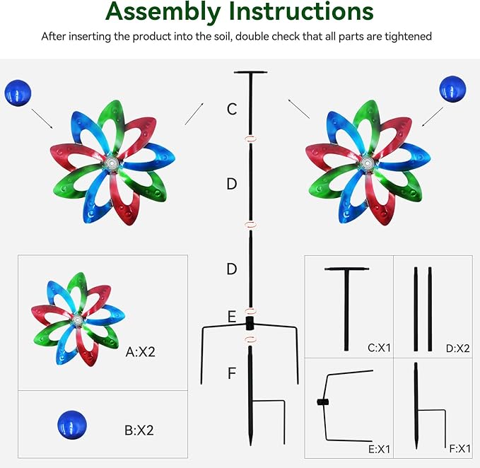 - All-Weather Metal Fortress: Colored blades with anti-rust coating, this metal wind spinner UV-resistant coatings maintain vibrancy for outdoor exposure withstands -20°F winters to 120°F summers without fading.