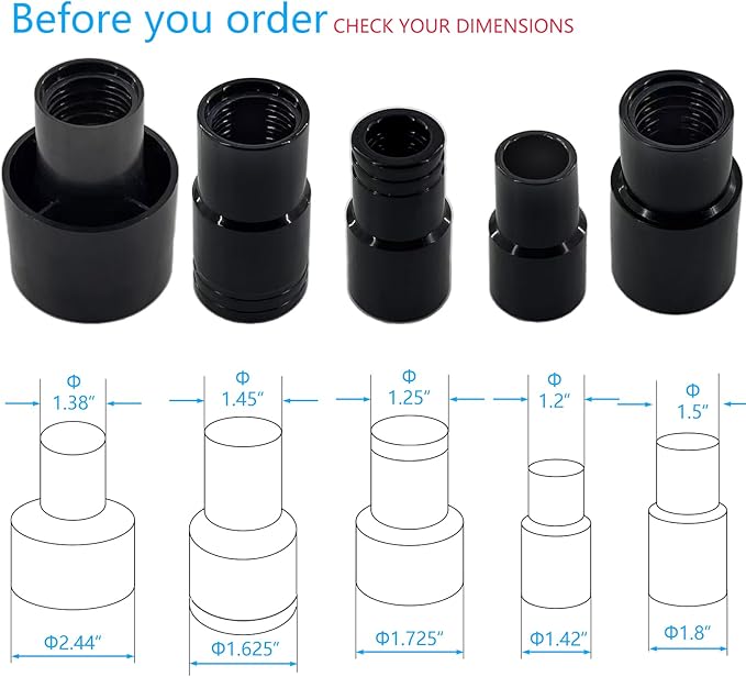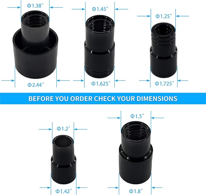- FITTINGS AND FEATURES: No.3 and No.4 1-1/4“ OD, 1” ID for handheld tools and styling applications such as handheld vacuums, home vacuums or spot cleaning in small studios.No.5 15/8“ OD, 1 3/8” ID for precision woodworking tools such as carvers to efficiently collect wood chips and dust.