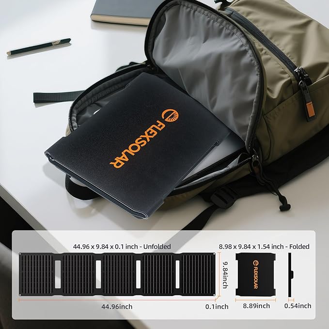 - 【Smart Safety & Wide Device Compatibility】This FlexSolar 40W portable solar panel charger intelligently detects devices to deliver safe, rapid power (5V/3A, 9V/2A, 12V/1.5A) while preventing over-current, over-voltage, overheating, and short circuits. Compatible with most of power stations, phones, tablets, and outdoor gear.