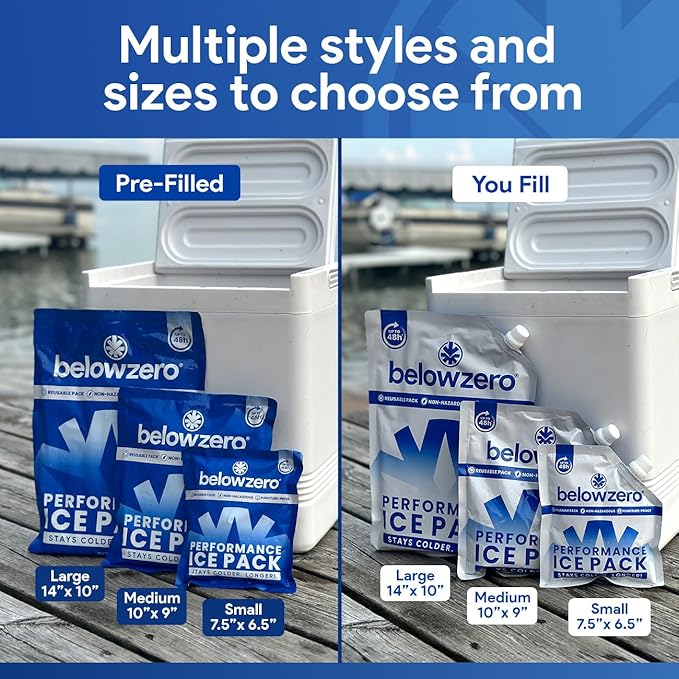 Below Zero Reusable Ice Packs for Coolers – Long Lasting Cooler Ice Pack Blocks, Leak-Proof Freezer Packs for Camping, Lunch Boxes & Travel
