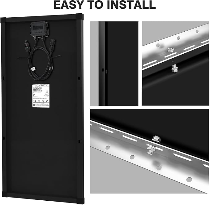- 【N-Type Solar Panels - 25% High Efficiency】100W solar panel, made of N-type solar cells, provides an amazing 25% conversion efficiency. Compared with traditional P-type solar cells, N-type solar cells can provide greater power output.