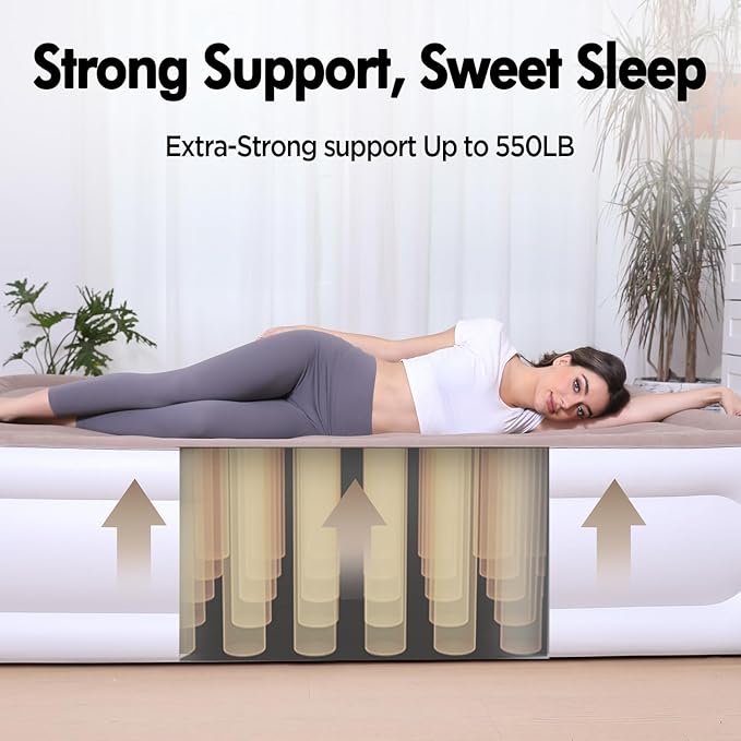 - Raised 18" Height for Real Bed Comfort Standing 18 inches tall, the Etto blow-up mattress makes getting in and out of bed effortless — no more struggling with low, sagging airbeds. It delivers the elevated comfort of a real bed, perfect for adults and overnight guests, whether at home or on the go