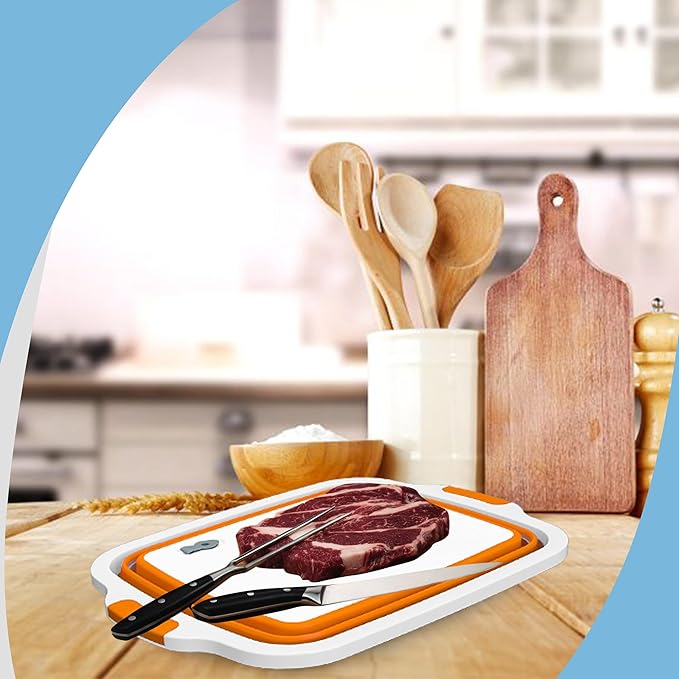 - PORTABLE DESIGN:Our Foldable BPA Free cutting board for kitchen design makes it easier to carry to outdoor activities and for indoor use. Our bbq meal prep tub Easy to carry handles make it a breeze to transport from kitchen to grill, picnics or camping trips. this vegetable washing basket has 3 adjustable heights.