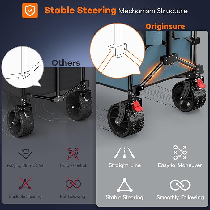 - ใ๐ญ๐ฌ.๐ฏ๐ฒ ๐ฐ๐ ๐ณ๐ ๐๐ฎ๐ฟ๐ด๐ฒ ๐๐ฎ๐ฝ๐ฎ๐ฐ๐ถ๐๐ ๐๐ถ๐๐ต ๐ฆ๐บ๐ฎ๐น๐น๐ฒ๐ฟ ๐๐ผ๐น๐ฑ๐ฒ๐ฑ ๐ฆ๐ถ๐๐ฒ ๐ฃ๐ผ๐ฟ๐๐ฎ๐ฏ๐น๐ฒ ๐๐ผ๐น๐น๐ฎ๐ฝ๐๐ถ๐ฏ๐น๐ฒ ๐๐ฒ๐ฎ๐ฐ๐ต ๐ช๐ฎ๐ด๐ผ๐ปใOriginsure foldable wagon cart, 48.43 "L x 24.02 "W x 24.41 "H large unfolding size, 10.36 cu ft/300L massive storage space, triple the capacity of similar wagons. Adopting an innovative folding design that maintains its height, the Capacity reduces to 1.36 cu ft when folded, only 1/3 of other carts. Compact and space-saving, it can be perfectly stored in the car trunk and room corners.