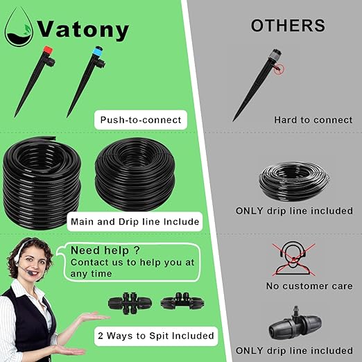 - 💧 【Smart Automatic Drip Irrigation System】:Easily create a high-efficiency, water-saving irrigation solution! This kit features precision drip technology with smart water flow control, ensuring plants receive even and consistent hydration, reducing water waste, and keeping your garden in optimal growing condition at all times,great for atomization, lawn irrigation, patios, roof cooling,agriculture, vegetable , greenhouse, flower bed, swimming pool misting fog cooling irrigation etc.