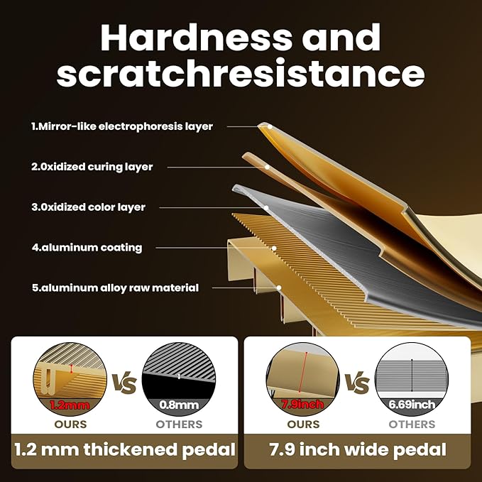 - ANTI-SLIP DESIGN: This remarkable features of large pedal is prominent parallel lines on the surface to prevent slipping. And wide pedals have ample spaces to stand firmly step by step.Also,rubber anti-slip feet increase friction with the ground to strenthen stability.Double protection provide you newly safety experince.