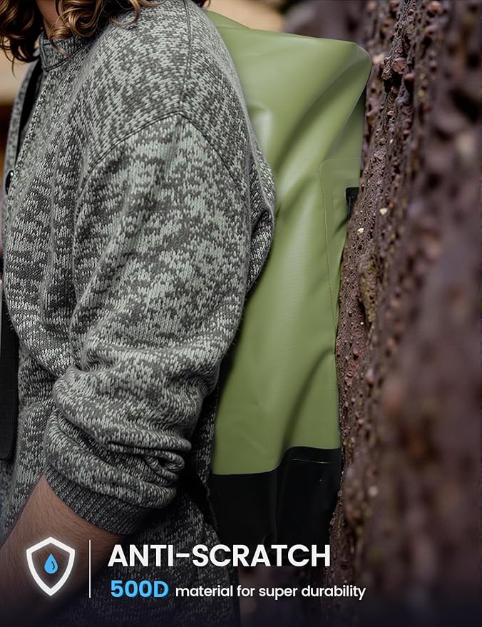 - Superior Waterproofing - Stay prepared for any adventure with the Lamicall 20L Waterproof Dry Bag, crafted from heavy-duty 500D PVC fabric for superior protection against rain, snow, sand, and dust. Whether you're kayaking, hiking, or hitting the beach, this 20L green dry bag ensures your phone, camera, clothes, snacks, and documents stay completely dry and secure. Note: While highly water-resistant, this dry bag is not designed for full submersion.