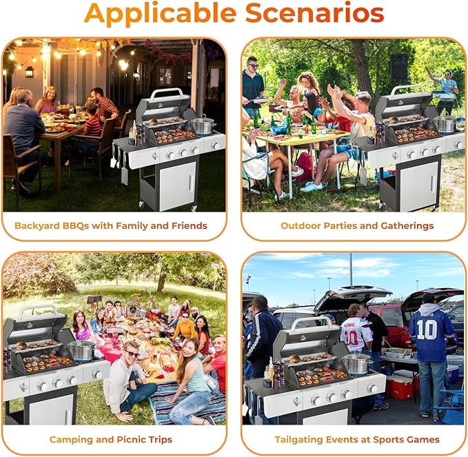 - 【Versatile for Multiple Scenarios】Suitable for backyard BBQs, outdoor parties, camping, tailgating, holiday feasts, and weeknight dinners, this versatile grill makes every occasion delicious