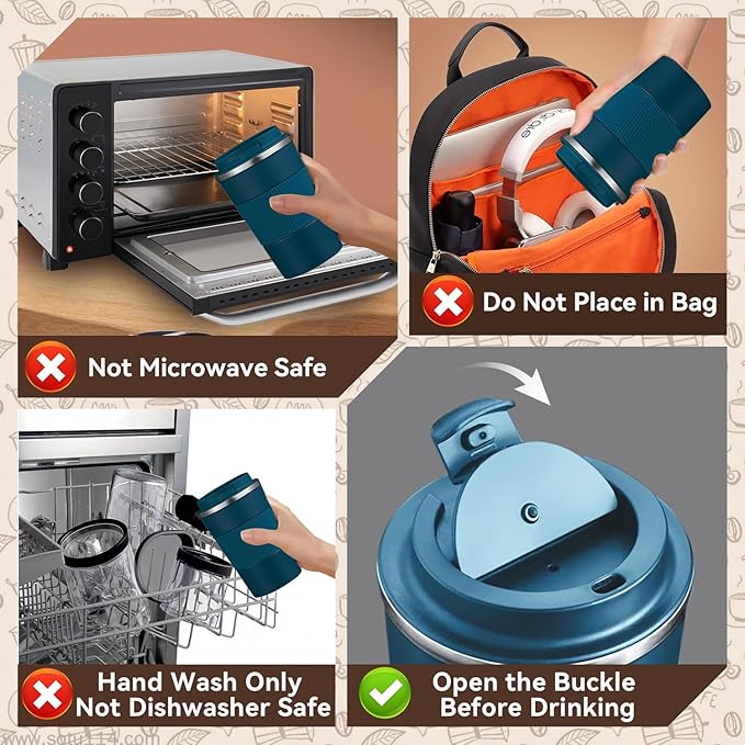 - Secure Leak-Proof Lid: The mug comes with a carefully designed BPA-free lid that forms a secure seal, significantly reducing the risk of spills or leaks during movement. Perfect for driving, commuting, or multitasking at your desk. You can toss it in your bag or backpack with confidence.