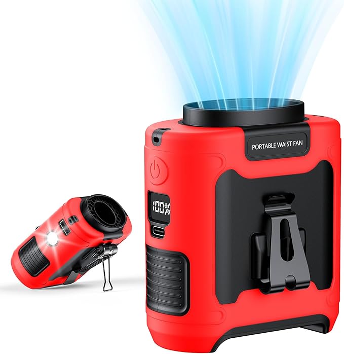 - 【Full upgraded and Drop-Resistant】Our waist fan is designed for various outdoor usage scenarios. It comes with a high-quality protective silicone leather case which protects from shock when dropped and ensures the body fan is not damaged at all. The addition of a protective silicone cover not only provides anti-slip function but also makes it more resistant to drops. The upgraded Manganese steel clamp provides stronger gripping force, always keeping the wearable fan firmly, and is more durability.