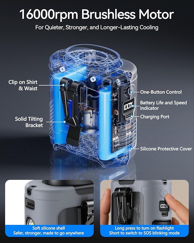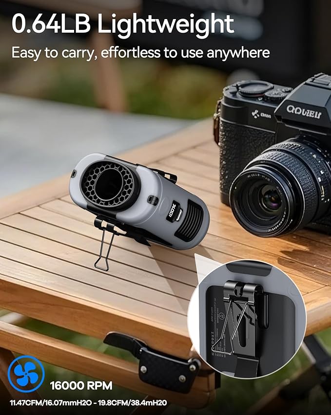 - Lightweight & Portable: Weighs only 0.63 lb, USB-rechargeable, perfect for camping, fishing, hiking, cycling, and everyday cooling.
