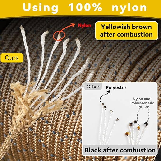 - 【High quality】Made of high-strength 5 nylon cores.The rope ends on both sides are wrapped by heat shrink tubes to prevent stranding.Wear resistance and aging resistance,long usage time
