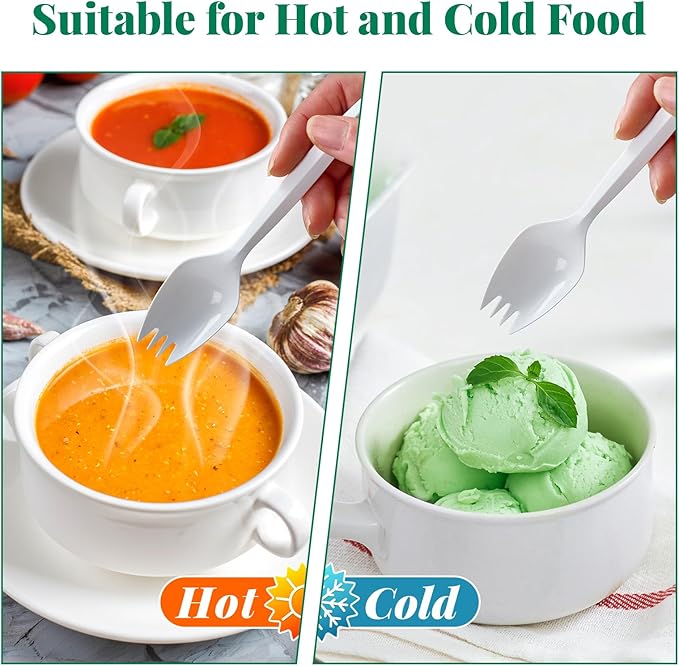 - Clean and Crisp White: Neutral white sporks bulk blend seamlessly with any table setting, enhancing the visual appeal for casual or formal dining.