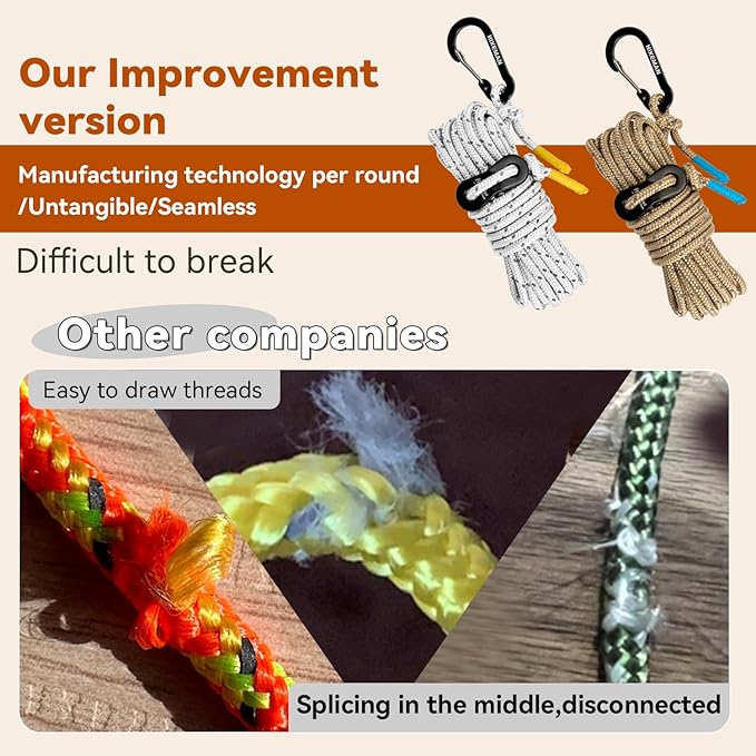 - 【High quality】Made of high-strength 6 nylon cores.The rope ends on both sides are wrapped by heat shrink tubes to prevent stranding.Wear resistance and aging resistance,long usage time