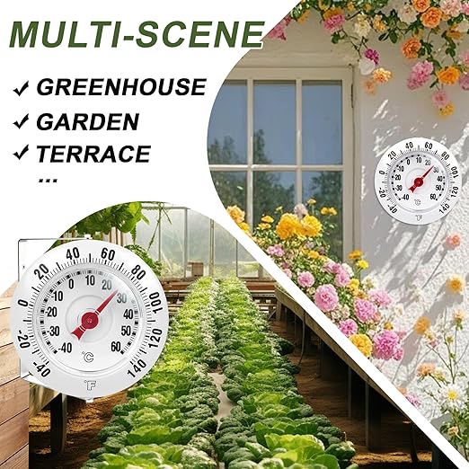 - Easy to Read: Featuring a bright red pointer that contrasts sharply with the white dial and black numbers, this outdoor thermometer is designed for effortless readability, even from a distance. Its large and clear display ensures visibility in various environments.
