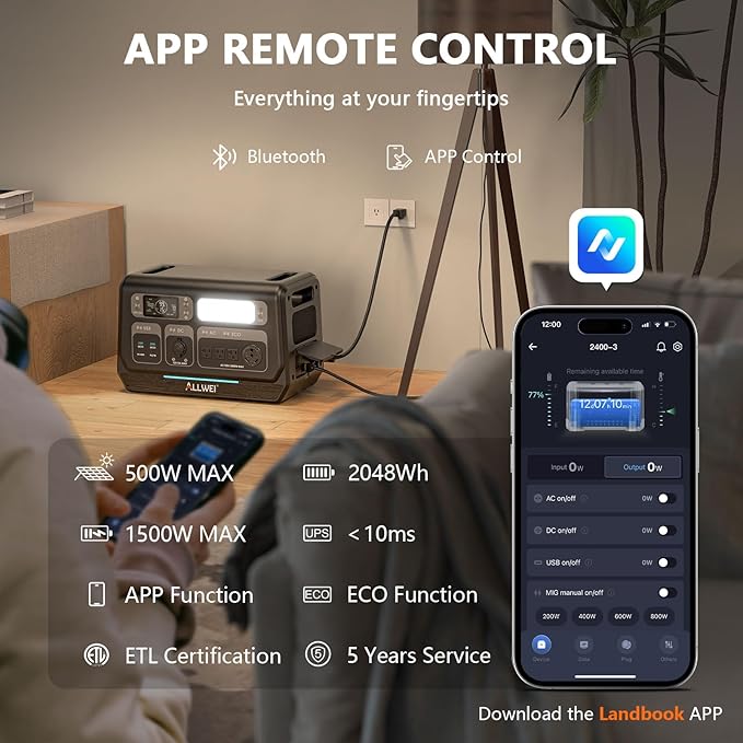 - 【Smart App Control】The Landbook App empowers you to monitor the real-time status of your portable power station, remotely toggle switches, activate charging mode, conduct remote firmware upgrades, and customize settings to your preference.