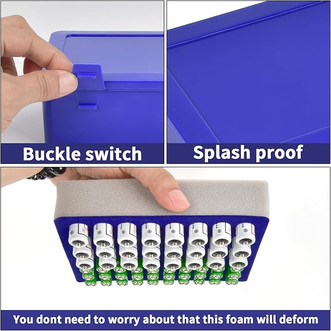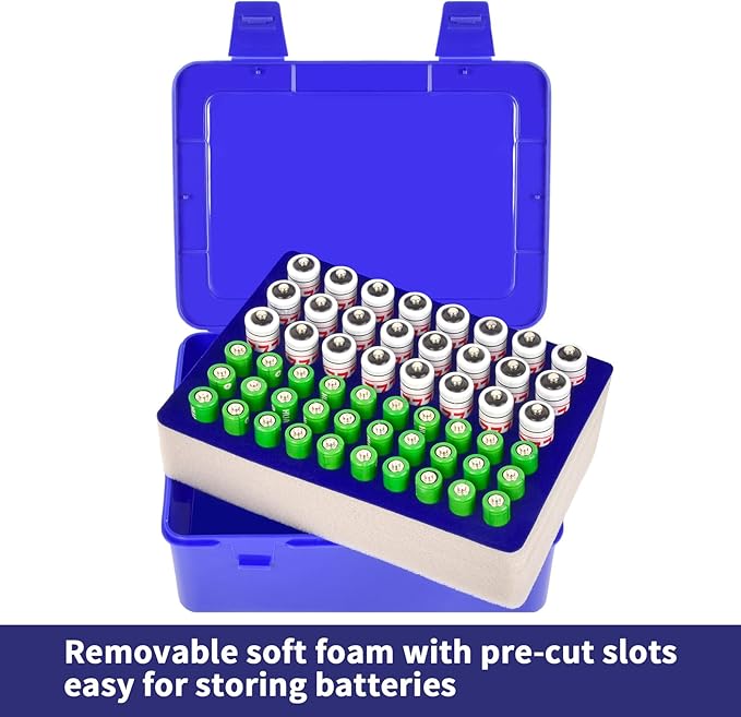 - Battery Storage Box: Battery holder case with thick and soft padding can fully protect your batteries. Detachable insert foam with well cut holes fits different-sized batteries snugly, also can tightly fix all batteries in the groove, avoid the friction between batteries.makes your mess battery regular and safe