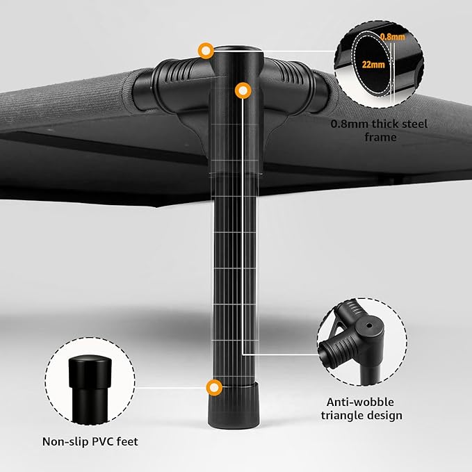 - 🏕️ Premium Waterproof Canvas – Built for Outdoor Life: Crafted with heavy-duty canvas fabric and a waterproof coating, this elevated dog bed offers superior durability, water resistance, tear resistance, and comfort. The canvas surface stays dry and is easy to clean, making it perfect for camping, travel, or backyard use. Your pet enjoys a sturdy, cozy, and dry spot anywhere outdoors.