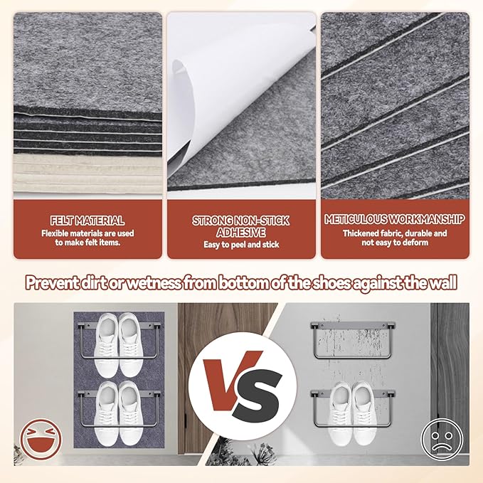 - Easy Installation: Each rack includes two screws for secure mounting, and it has double-sided tape to fix the wall protection pad firmly on the wall, ensuring stable and sturdy storage.