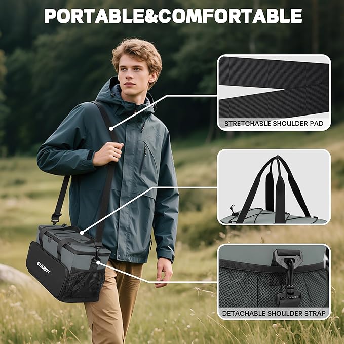 EULANT Large Waterproof Cooler Bag with Removable Lunch Bag,27 Can Collapsible Insulated Ice Chest Leak-Proof Cooler Bag for Men & Women Work Outdoor Beach Trips